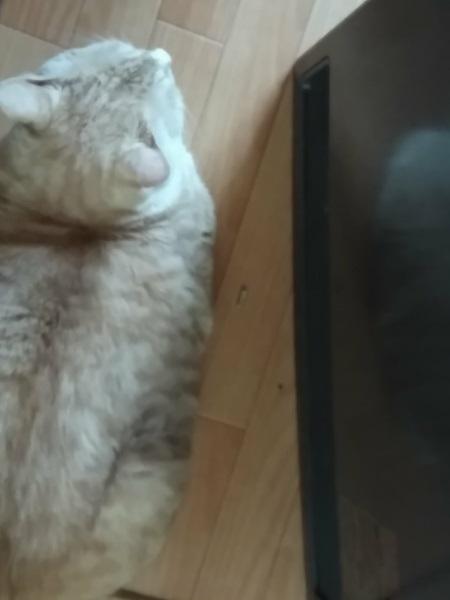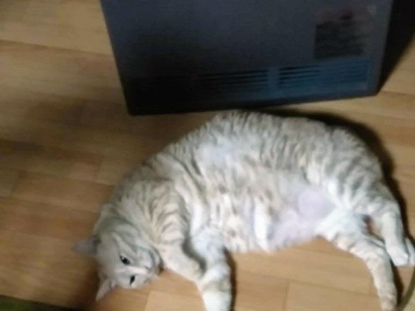 それでも姫の体を触ると熱いので、そういうときは「足」で押してどかしています。