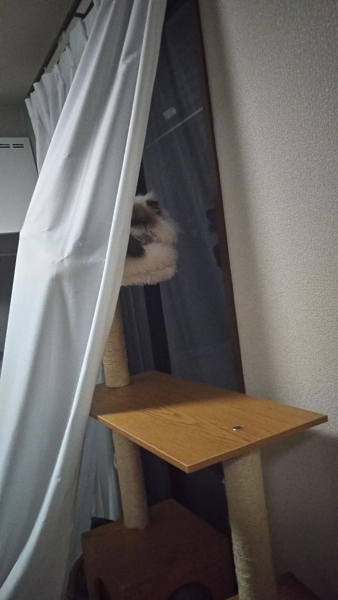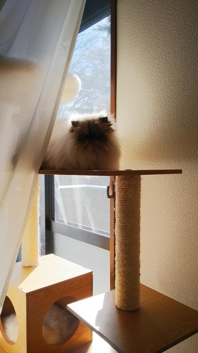 キャットタワー購入一年半にして、ようやく頂上に気付き、