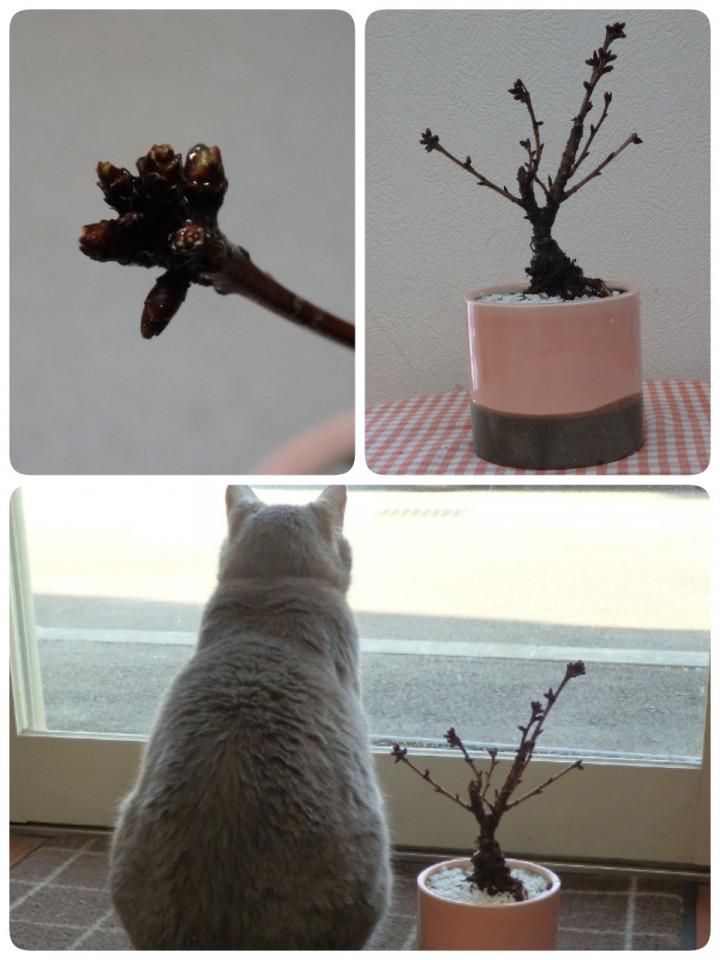 ちいさな桜、何となく芽が膨らんできたみたい。