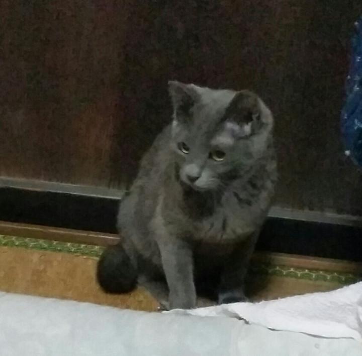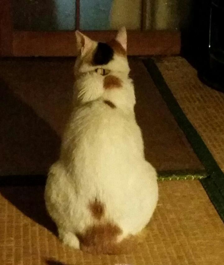 そんなもんさんが朝のごはんが終わってから夫に遊んでもらおうと台所を見つめて座っていた姿。