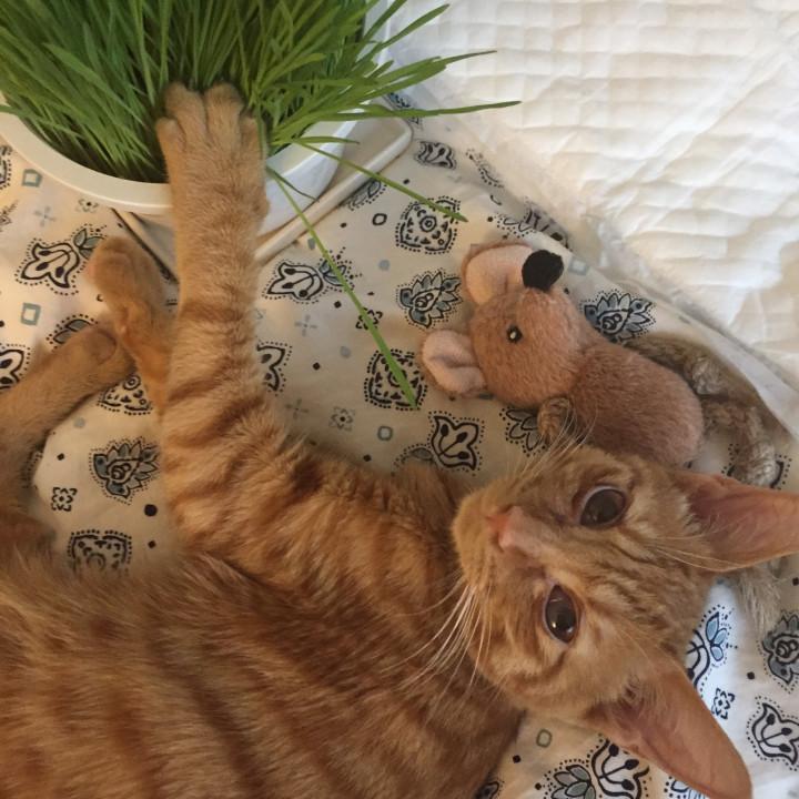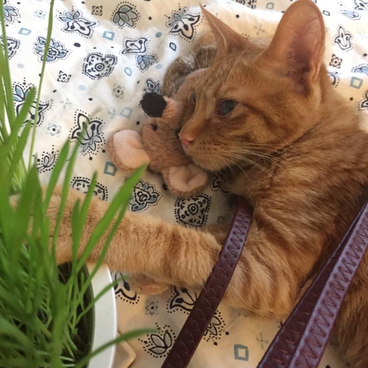 たまに食べたり(基本食べるのヘタっぴなので長い猫草の先がお口からペロ~ンて出てます)
