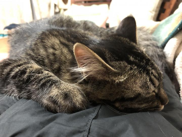 帰宅してからも私のお腹の上でゴロゴロしてくれました。