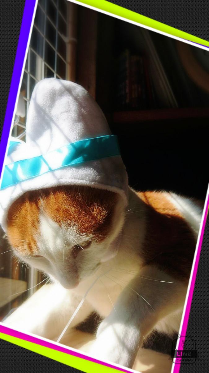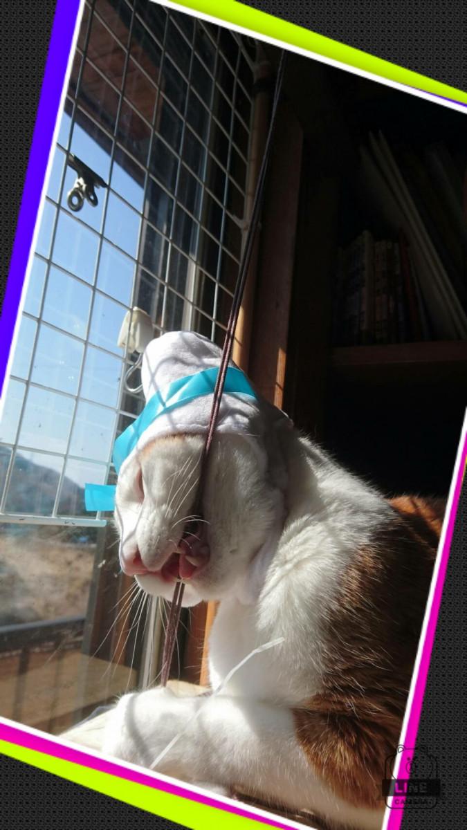 本当はひまわりさんに被ってもらいたいんですが、茶太郎の様子を逃げる用意を