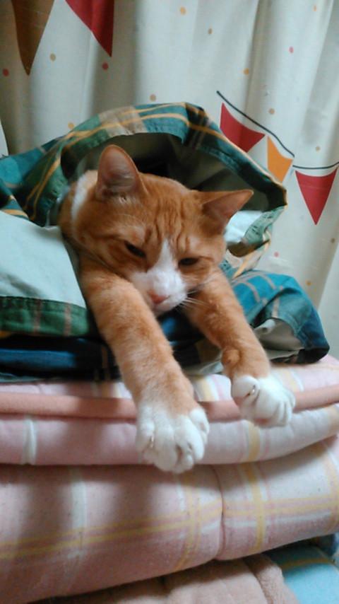 しらすは肌寒い時は畳んでる布団の中に潜り込みます。
