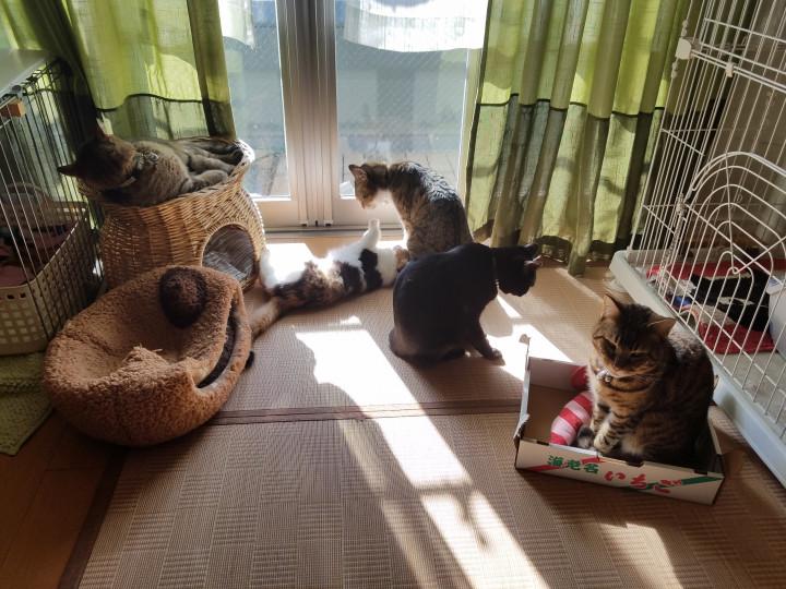 みんなで日向ぼっこ・・・というより、あったかいところを陣取ろうとしたら、結果こうなったって感じです😅