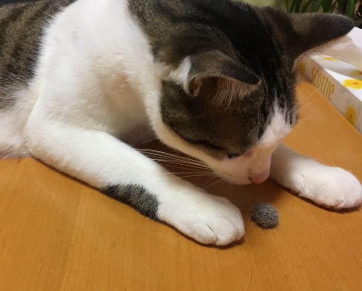 角田光代さんのエッセイに、猫が自分の抜け毛で作ったフワフワボールでよく遊ぶとあったのを思い出して、つくってみました。