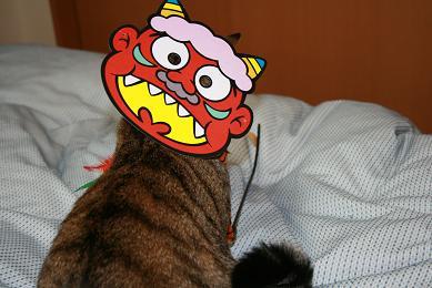 仕方が無いので、落花生に付いていた『お面』で遊んでみたけど