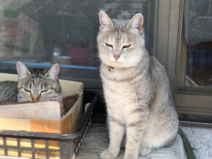 「悪いんねぇ、猫砂取り替えの時、油断したら白いのと茶色いのが逃げちゃったんだよ、悪いんねぇ」