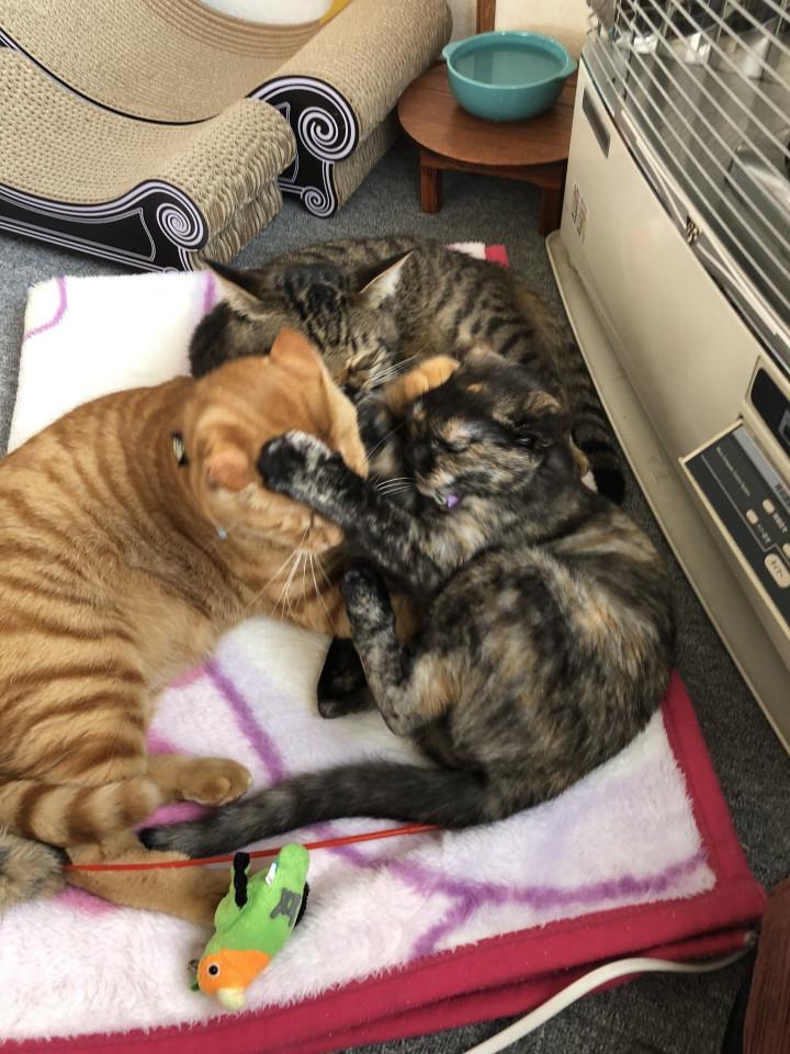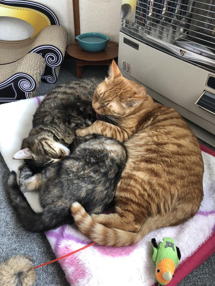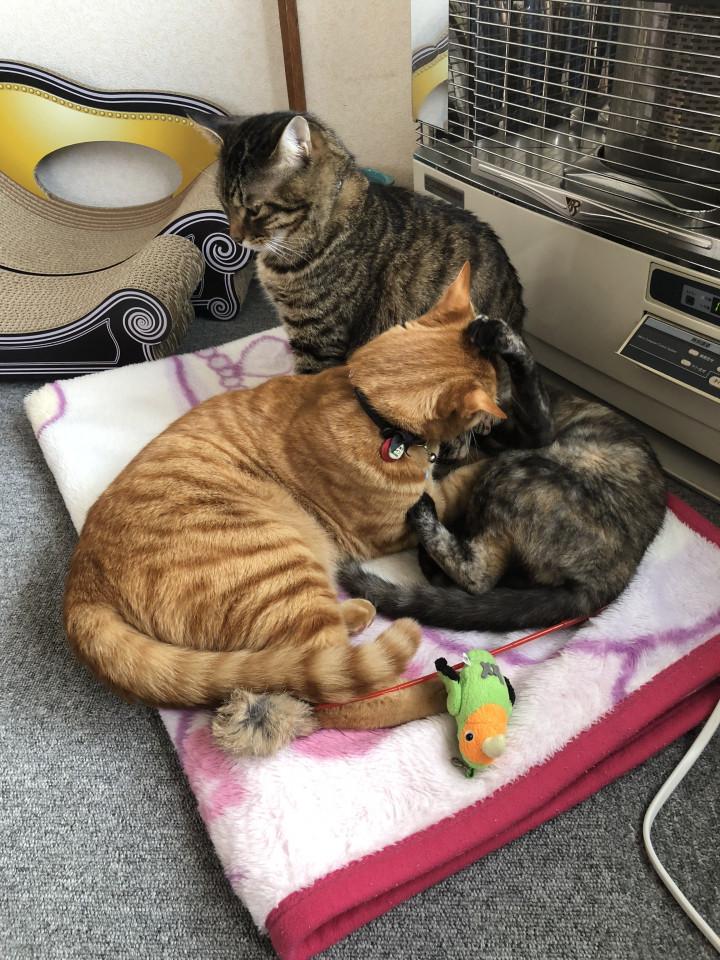 2人に毛づくろいされる( ˘•ω•˘ ).。oஇ