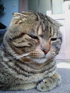 はれ~。ひよ~。ふえ~。へろ~。ほよ~。初めてだよ君みたいな猫は・・・。耳がすごく小さくて、顔がまん丸だね~。手の置き方も可愛いよ。
