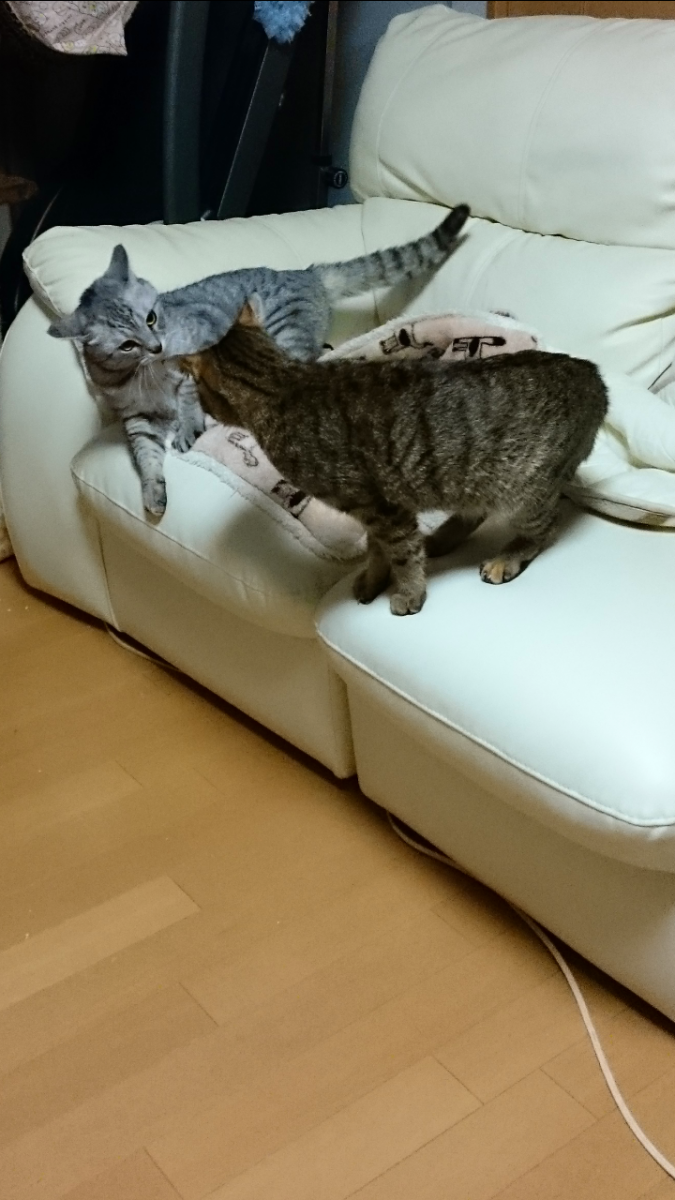 私の膝に避難するも、今度は私に甘えるげんに嫉妬したあんちゃんに喧嘩を吹っ掛けられる始末…