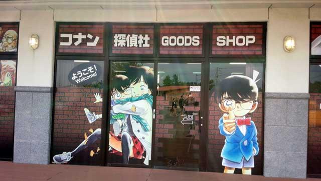 【ふるさと館の正面にあるコナン探偵社の看板・・グッズ販売です】