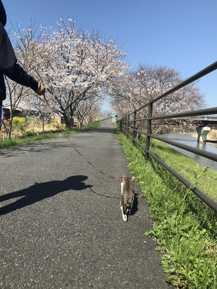 いつもの川沿いにお散歩へ🐈