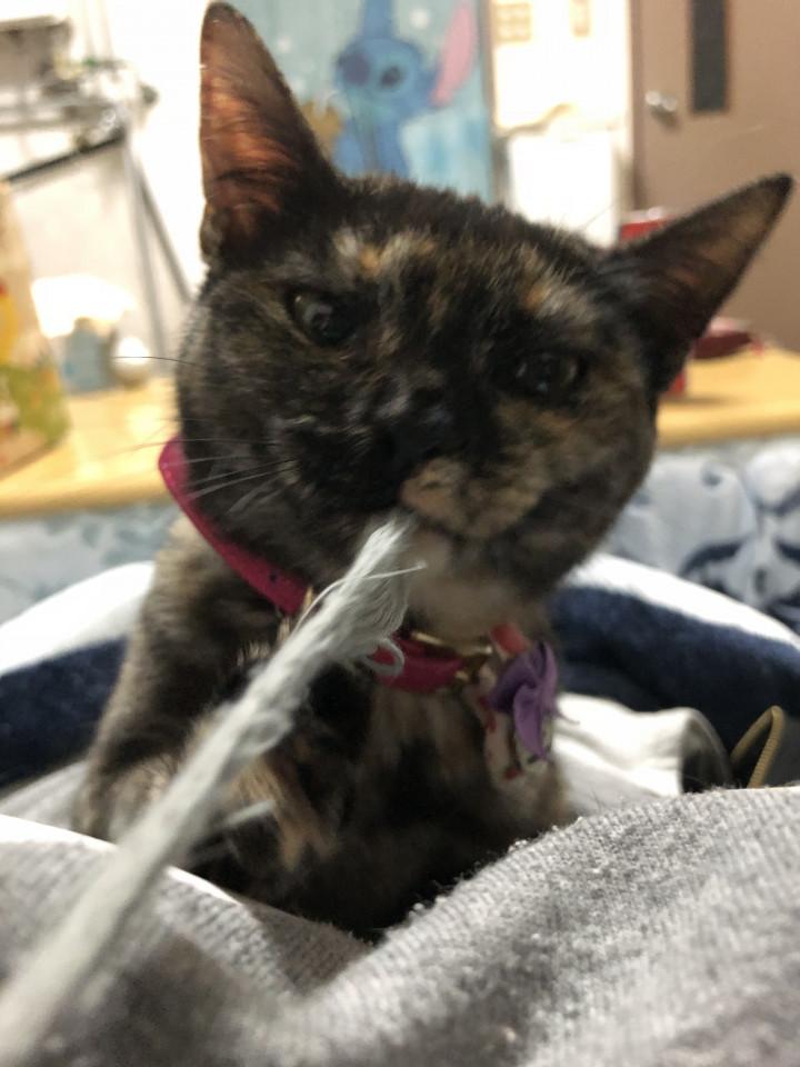 スエットの紐で遊ぶセト嬢(;^ω^)