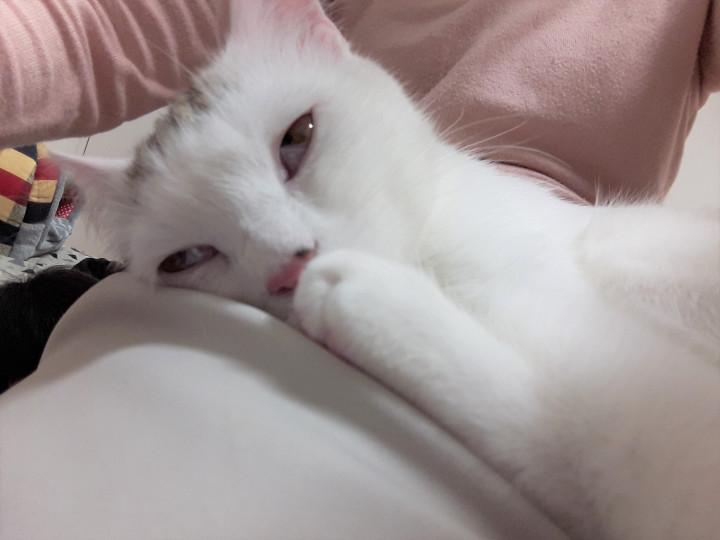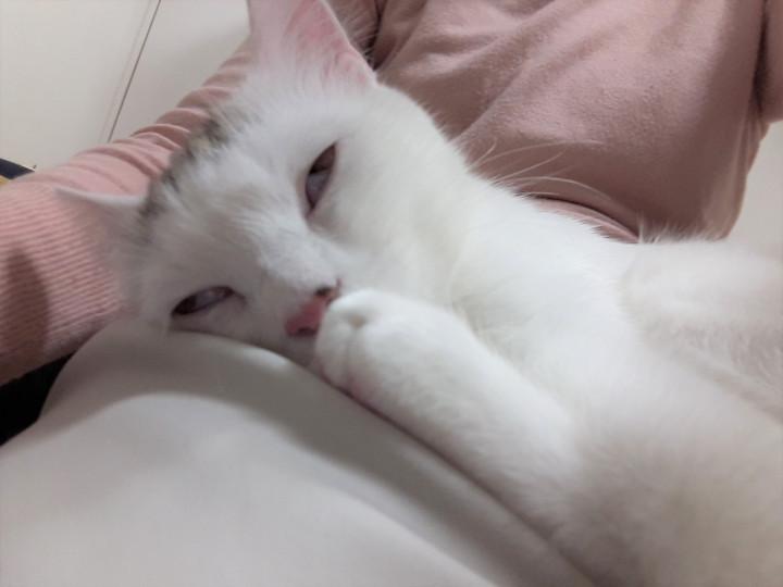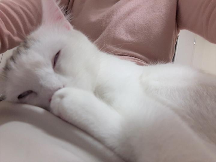 お膝の上でねんねしてたから、どんな顔してるのかなあ。と思って