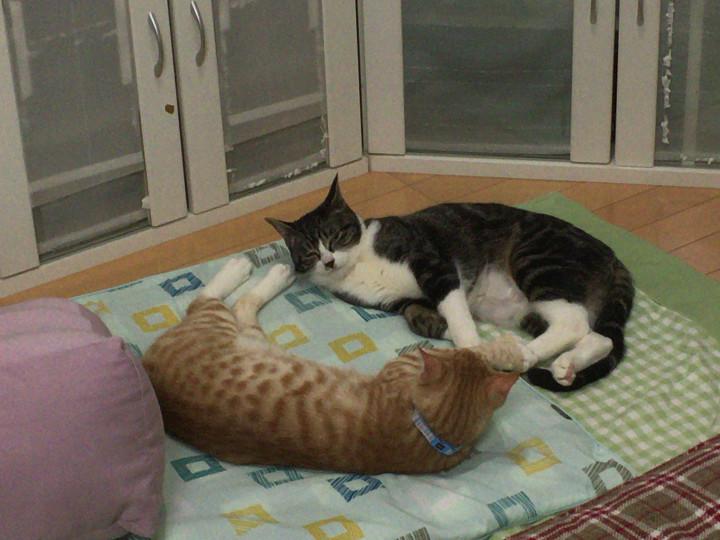 夜には落ち着いてねこ談義してました。