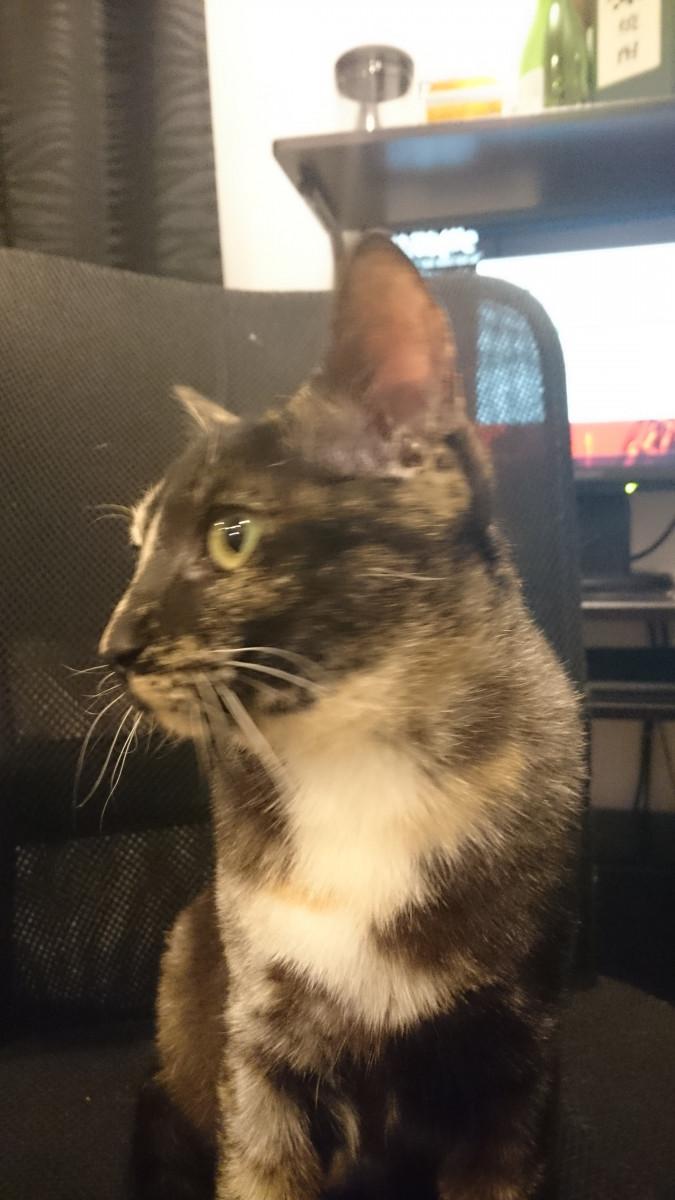 ほっぺだけでなく左目の上からも結構な太さのヒゲが…