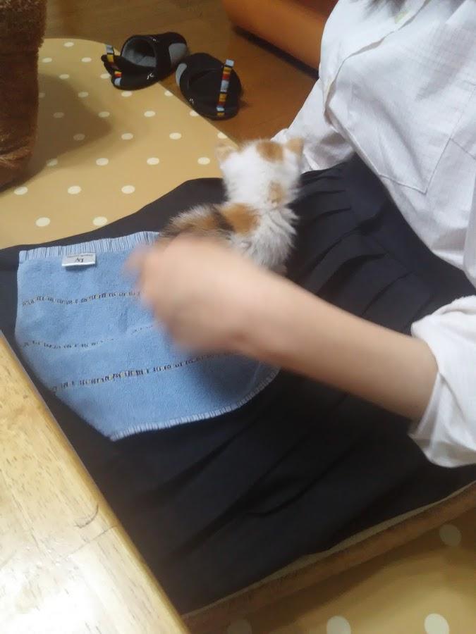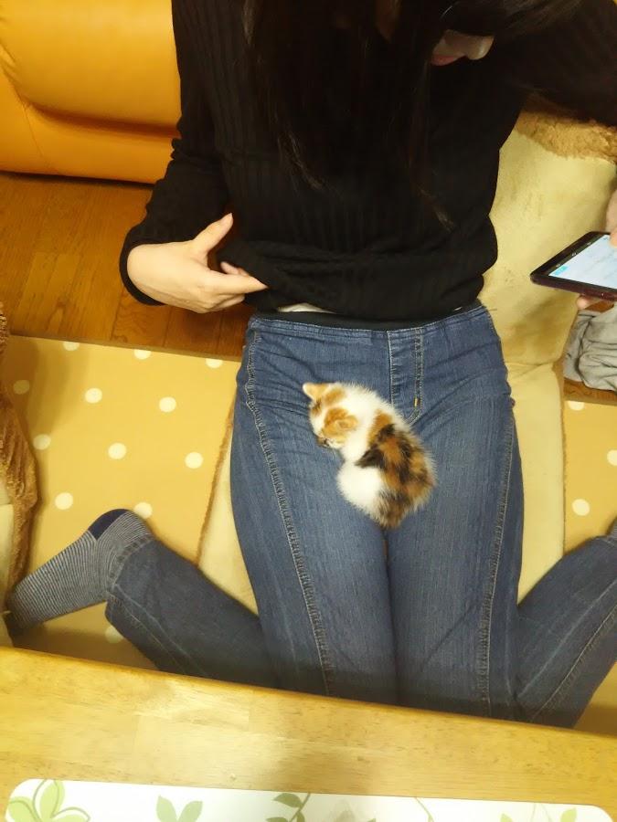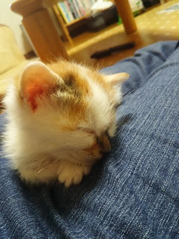 これは、娘の膝に乗っているところ。