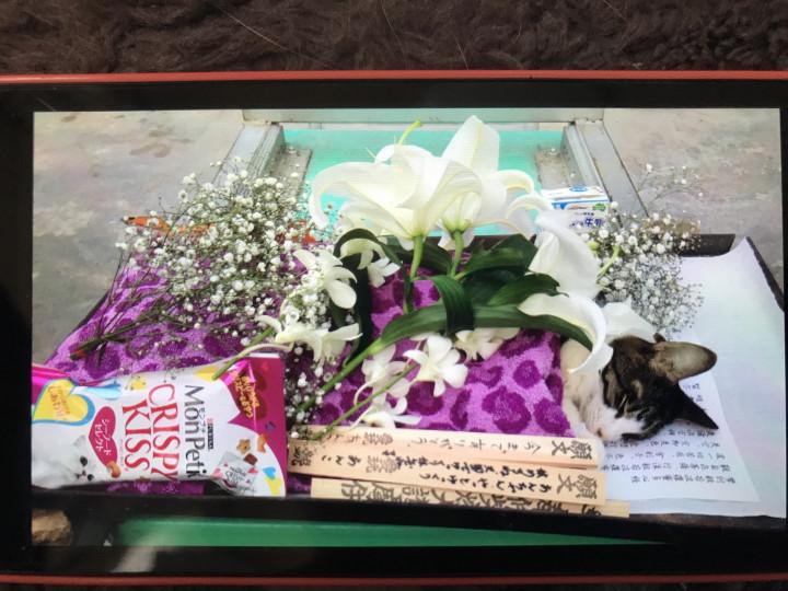 あんことの出会いは、野良猫の母猫が出産直後まだへその緒もついたまま運んできました。何匹か産んだようでしたが、この子だけを連れてきたのできっとおっぱいが上手に飲めなく成長も遅いこの子をお願いします…と言う事なのかと私はすぐに保護しました。何とか元気になって過ごしていたのですが…半年目の定期検診で腎臓、肝臓が生まれつき弱かった事がわかり、猫は透析治療が難しいらしく、もって1年と診断されました。何とか元気にしてやりたいと、その日から、2日に1回病院で点滴、診察、自宅での毎日の点滴と来る日も来る日も治療に明け暮れる毎日でした。凄く強く賢い子で猫かごを持って来ると病院に行く事もわかっていて震えながらでも自らカゴに入り頑張って頑張って点滴治療に通い1年…2年…3年…4年と経ちました。その頃には少し物を食べてもけいれんを起こすようになり…そのうち立ち上がる事も難しくオムツをしてという生活になりました…病院に通うのもストレスになるので、それからは毎日病院に点滴を取りに行き、自宅での点滴治療になり最後は私の腕の中で旅立ちました…最後に小さな声で必死で首をあげ「にゃー…」とか弱い声で泣いた事を今でも思い出すと涙が出てきます…本当に長い長い闘病生活よく頑張ったと思います。あんちゃんよく頑張ったね。本当にえらかった。私達家族は生涯あんことの生活を忘れる事はないと思います。言葉も話せない、聞いてやれない闘病生活は本当に辛いものでした…4年間親身に治療して頂いた獣医さん、看護婦さんにも心より感謝致します。