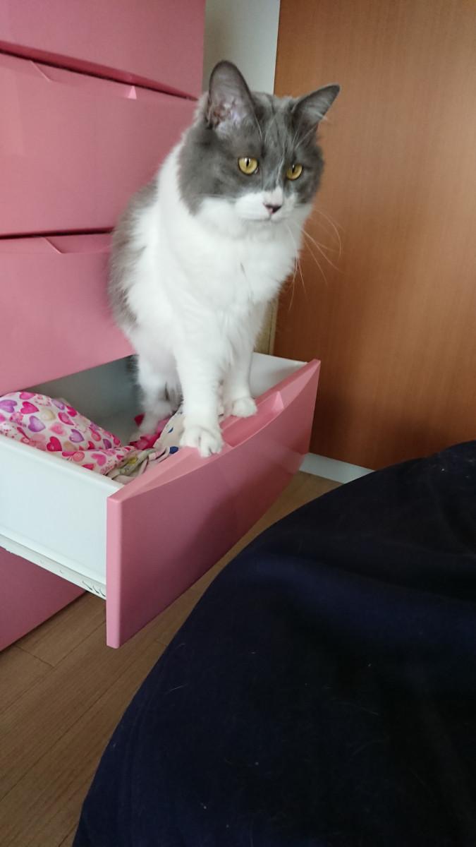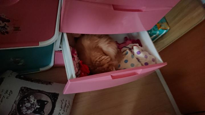 引出し開けて、娘の服をぐちゃぐちゃにし、あげくのはて寝る💦