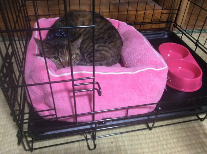 新しい猫ちゃんがトライアルで、来ました。とってもびびっています。家の猫ちゃん達は、大丈夫そうです。