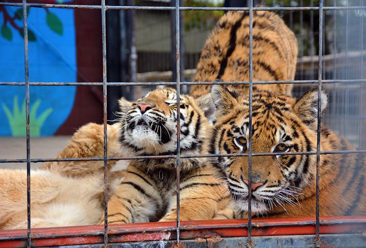 大きくなったら(身体の大きさに比べ)狭い檻に入れられ、