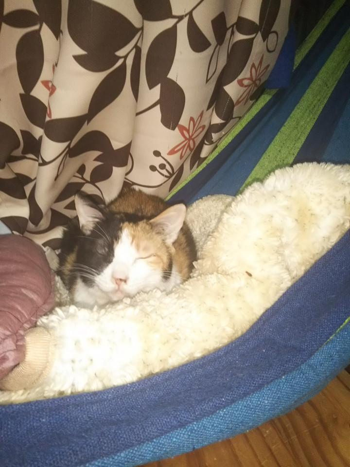 最近は私のハンモックで寝ています