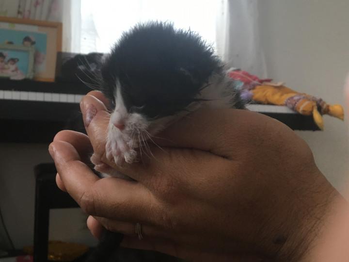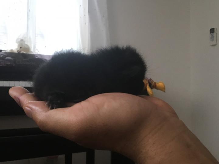 黒猫、仮名こんぶちゃん 女の子 きた時は211グラムでした。