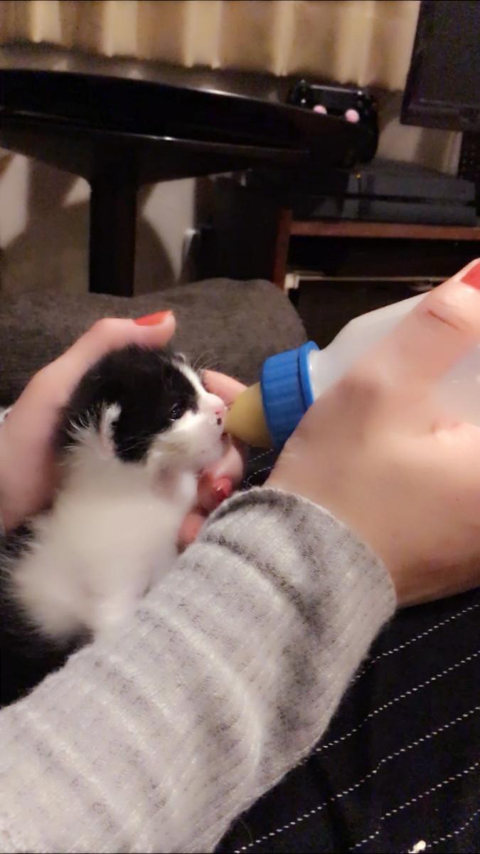 倉庫の中で餌やりをし、母猫の方は会社で面倒を見ることになったそうです。