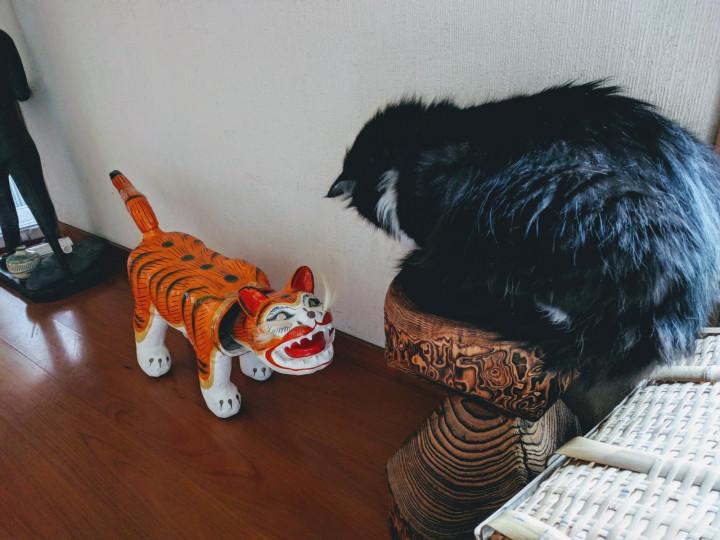 そんな姐さん、嫁がもらってきた張り子の虎が気になるよう。