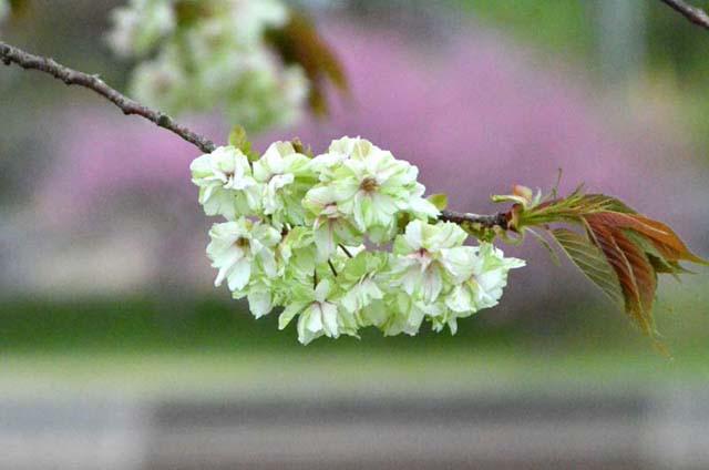 【奥に映ってるのは、八重桜ですね。】