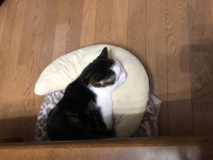 マロはお行儀良く、枕に頭をのせて。