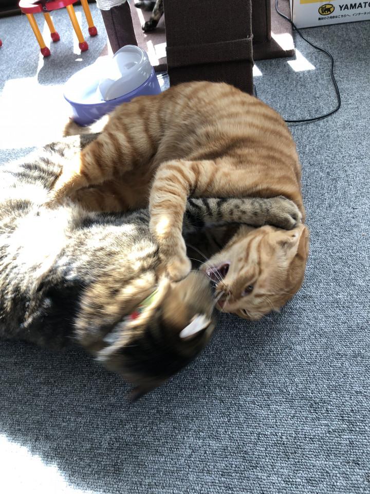 なんてねw違いますw私が帰ってきて嬉しくて興奮してプロレスごっこ誘って始めちゃった2人(;^ω^)
