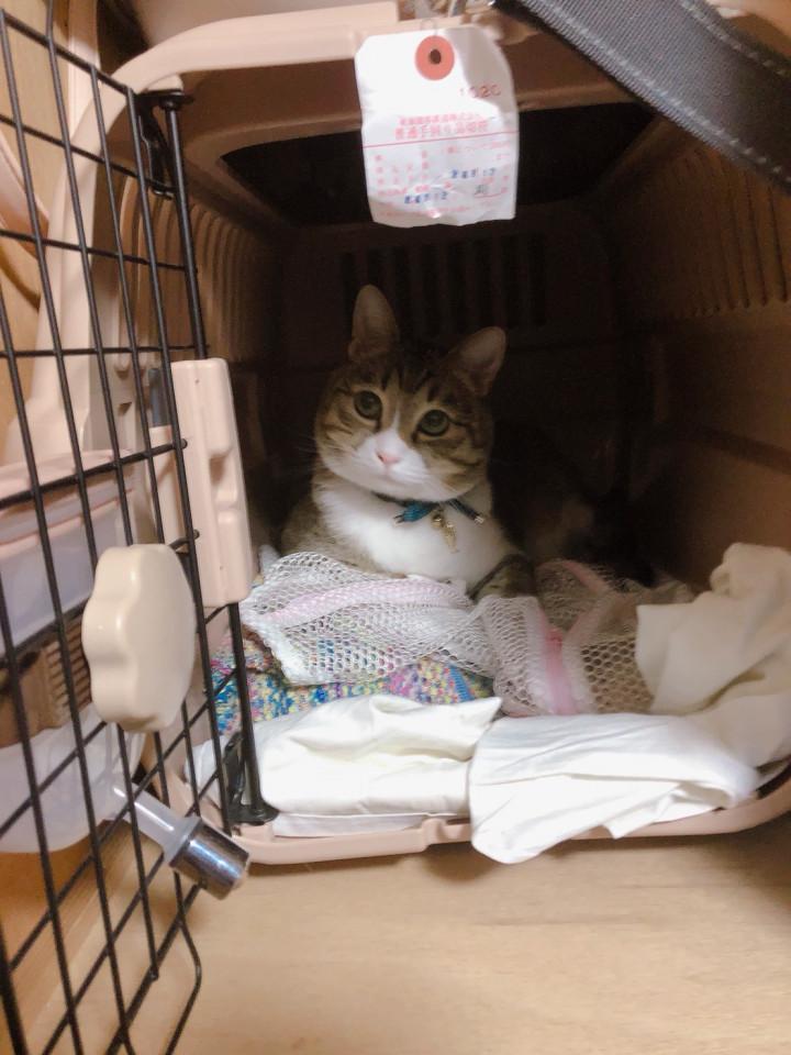 愛知県に出発する前にトララに挨拶しに行ったら、クローゼットにしまってあるゲージの中でくつろいでいました(=^x^=)