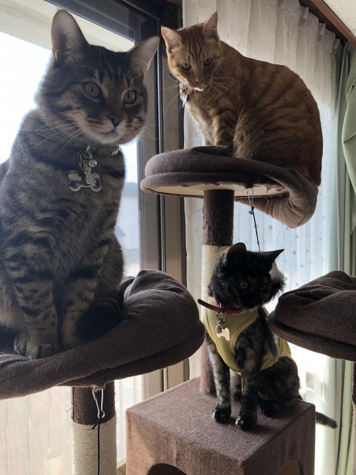 服着てるせいかキャットタワーに上がれないセト嬢(;^ω^)