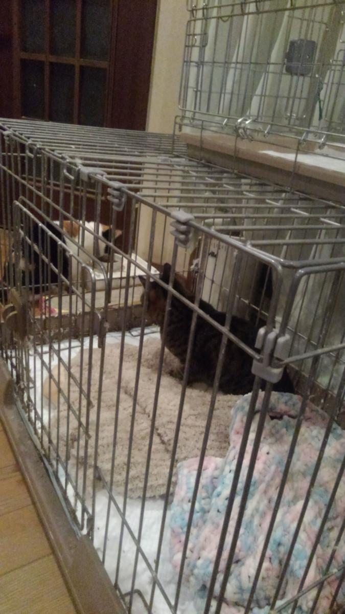 ひなに会いたいみたいで小屋越しにひなに向かって甘え声をだしてゴロゴロしてます。、でもひなは凄く面白くなさそうな顔をしてます