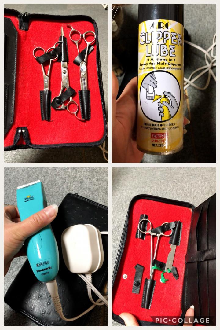 学校で使ってたトリミング道具とバリカンはキャバリア飼ってた時にホムセンで買ってきたやつ