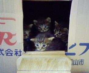 14歳のロシアンもどき巨猫フィ(♂)を筆頭に嫁の美猫カルネ、息子つばき、ぼたん。迷子のコギャル猫あやめも加わり大所帯・・・と思っていたら、あやめ(クロさん所の花のママ)がまた6プニー産んでまさに猫屋敷...
