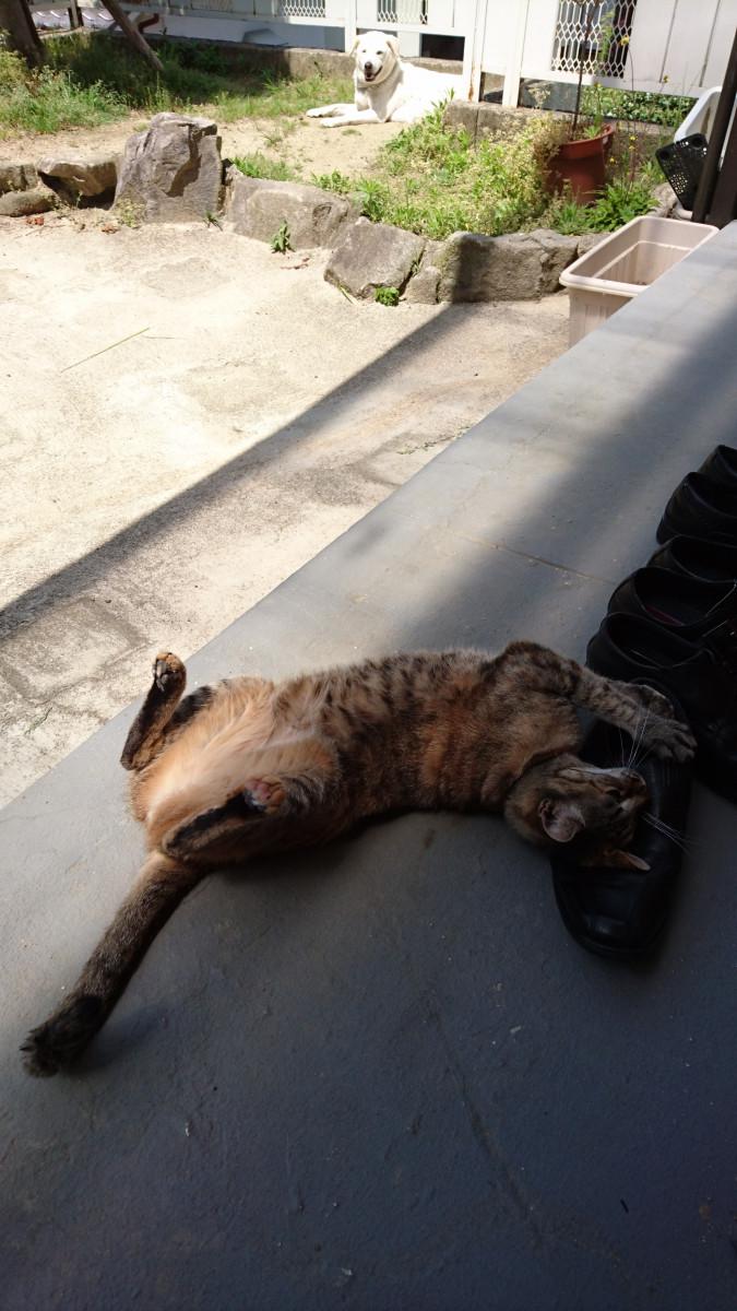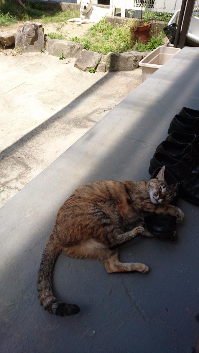 コロタ君は昼寝の前に日の当たる場所で二度寝。
