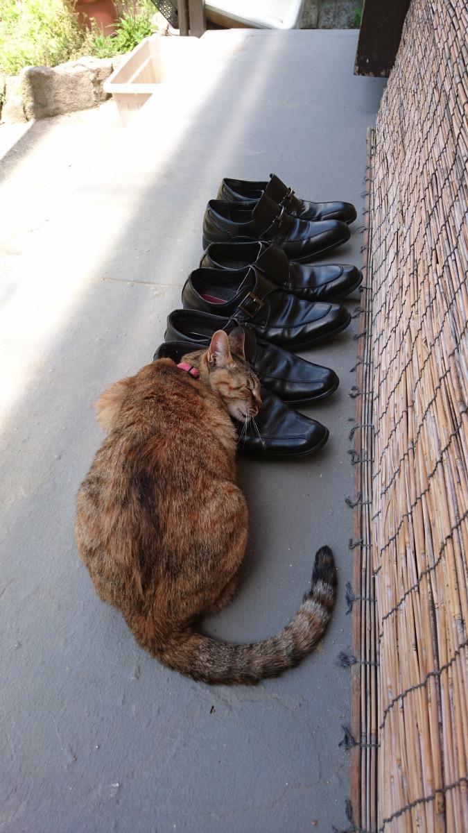 休みになると旦那さんが、ビジネスシューズをお庭に出して干しているのですが…
