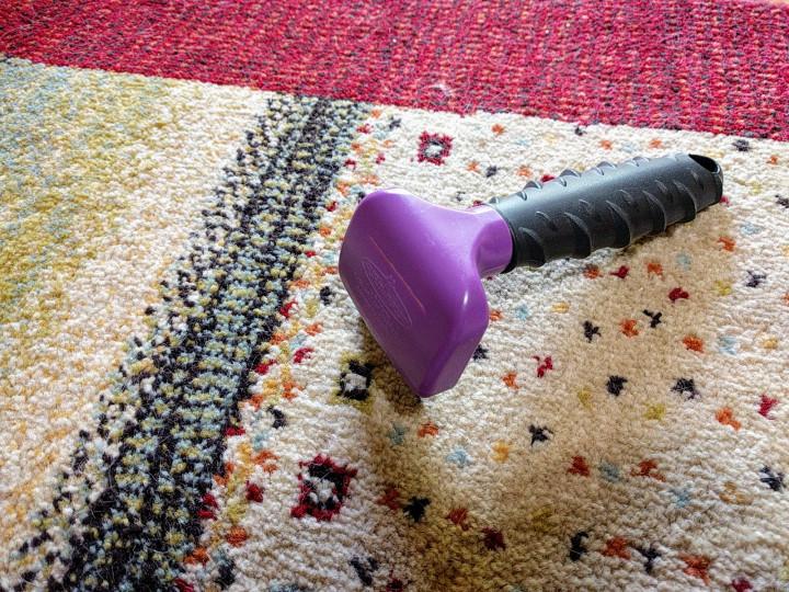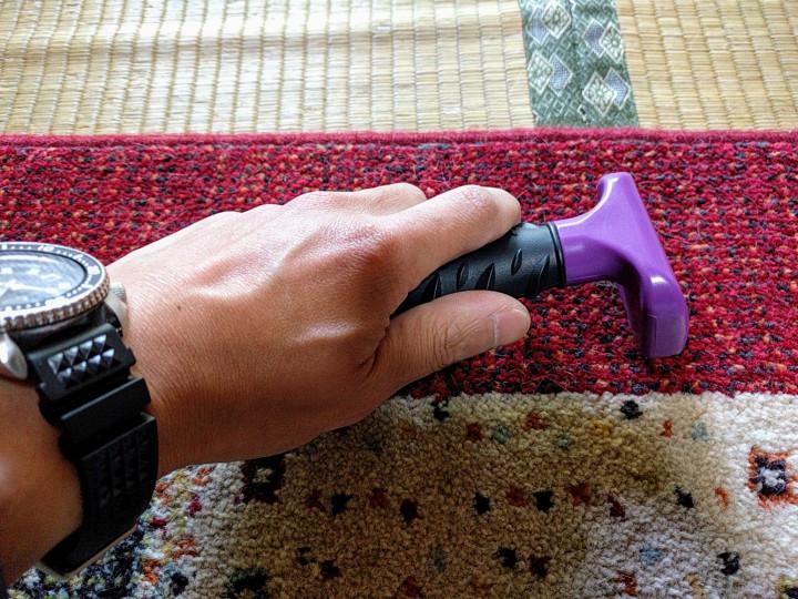 猫の代わりにカーペット上で、力を入れず刃の重みだけで、引きます。