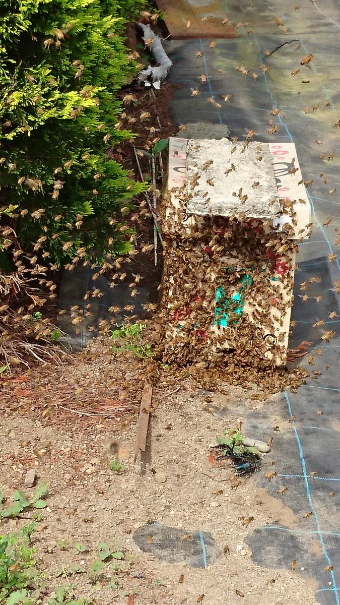 女王蜂が空き巣箱に入ったようで、10分くらいすると飛んでた働き蜂も巣箱に入っていきました‼️(*≧∀≦*)bラッキー