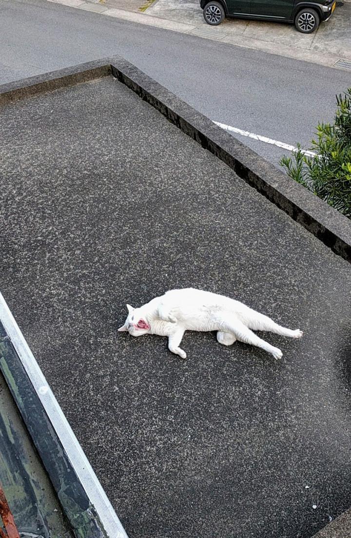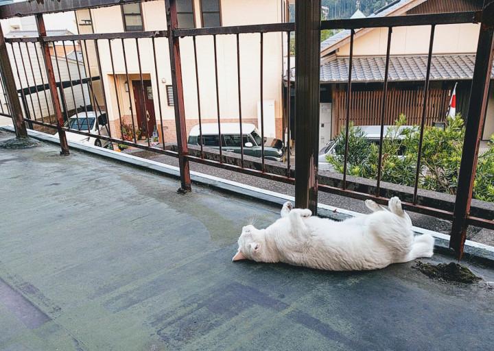 ベランダはもともとお気に入りで、彼はずっと入り浸っている。