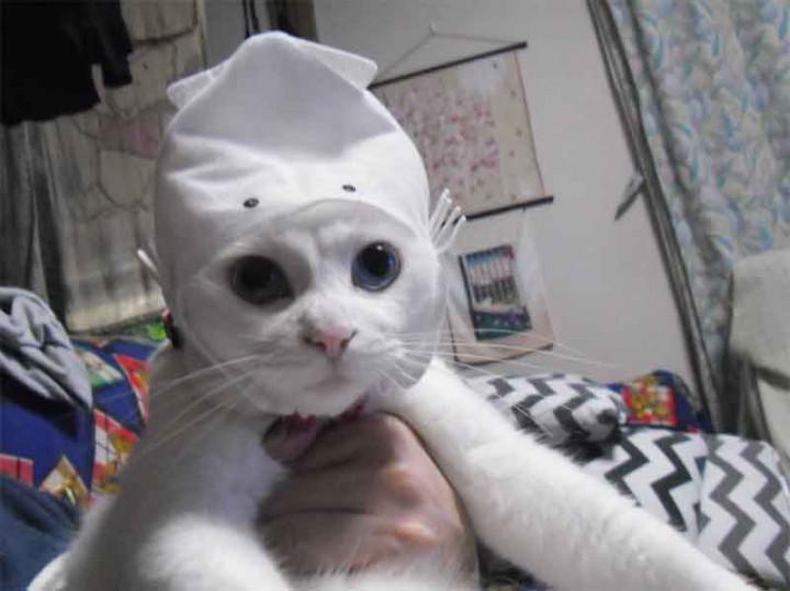 白猫に白いイカはちょっとイカしてませんね( ゚Д゚)