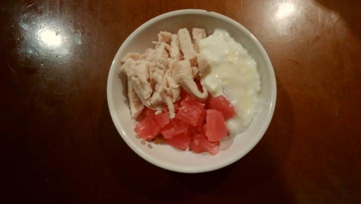 お刺身と鳥のササミいりのごはんです。もちろん免疫ミルク入りです。