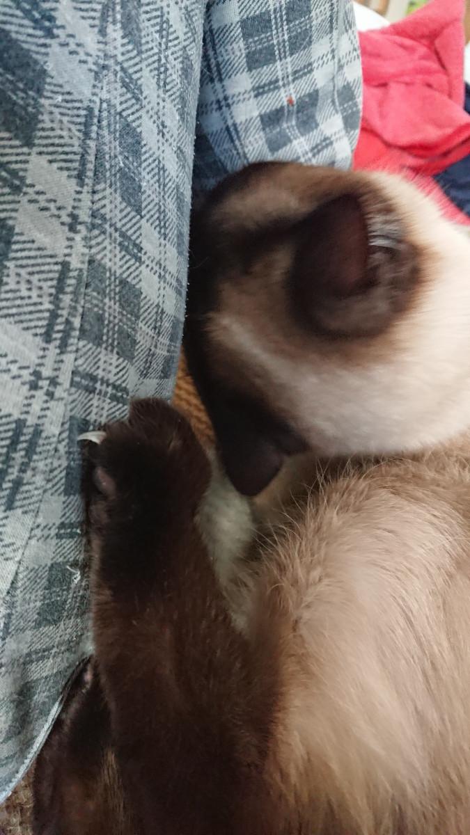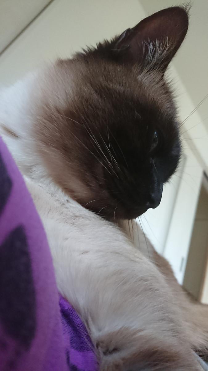 根負けして抱き上げて見上げる姿勢で一眠り。。