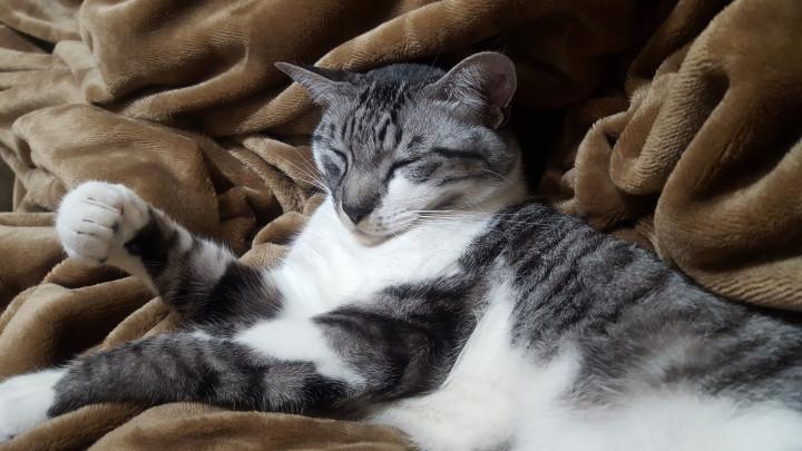 モフモフ毛布復活が嬉しかったのか?おねんねしながらさりげなくガッツポーズ…☺w