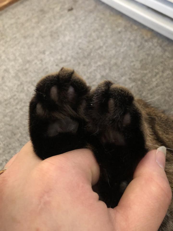 可哀想なくらいボンボン!バンバンに張った肉球・・・。