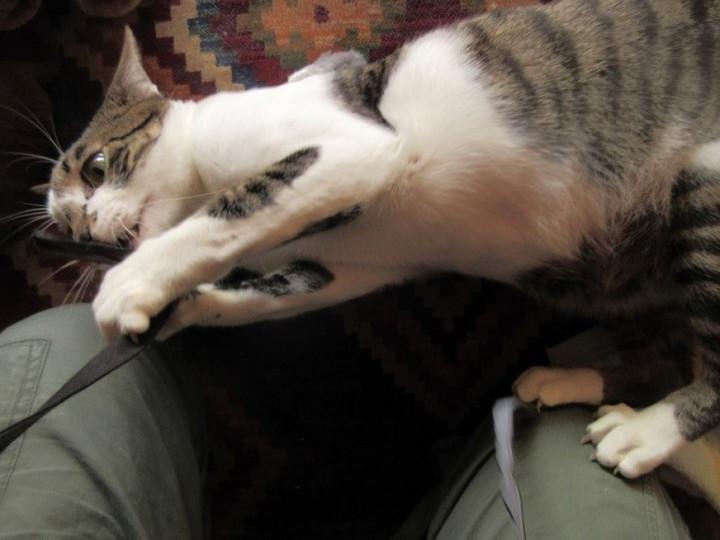 奥さんは色々と玩具で遊んであげていると、やはり食いつきがいいので、