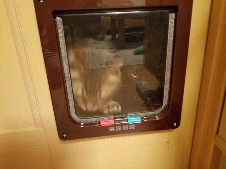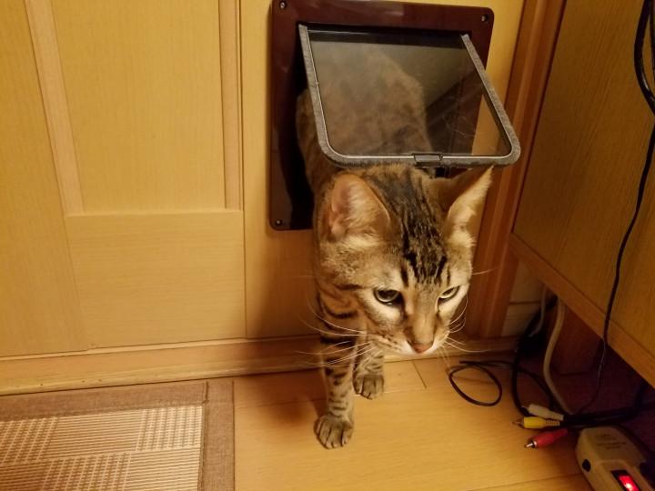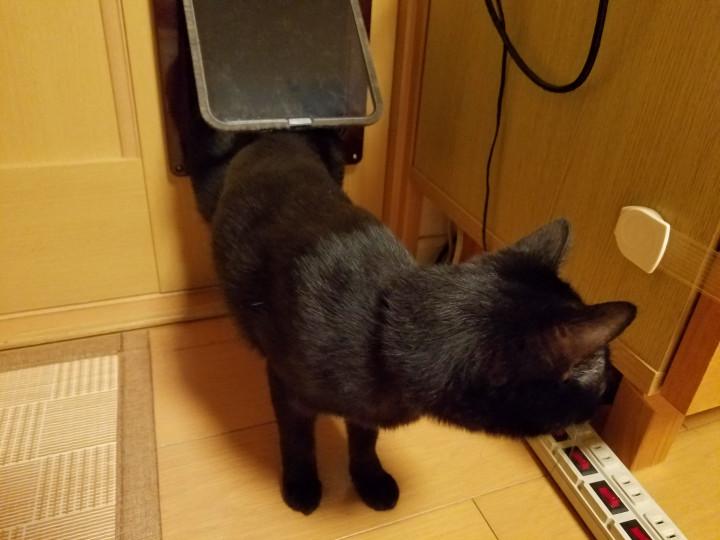 ドラニコサクちゃんの時は、寝るときはドアを閉めてても大丈夫だったんですが、ポンちゃんは夜中でも出入りしたいみたいで・・・。